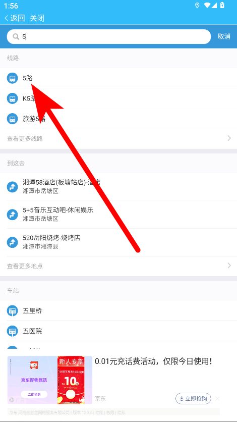 3、在搜索結(jié)果里,選擇對(duì)應(yīng)的公交線路,進(jìn)入該線路詳情頁(yè)面。