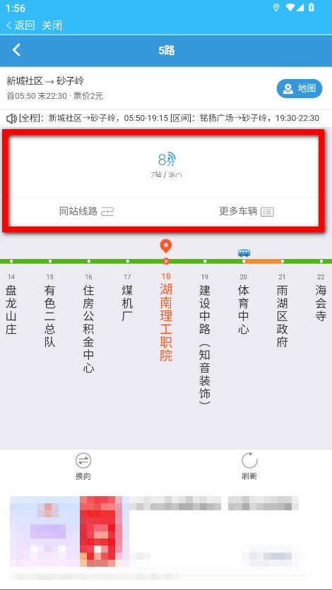4、在線路詳情頁(yè)面,即可查看公交的實(shí)時(shí)位置、到站時(shí)間等信息。