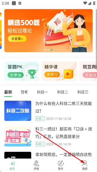 1、打開(kāi)斑斑駕道,點(diǎn)擊底部導(dǎo)航欄我的選項(xiàng)。