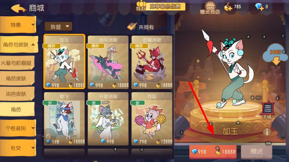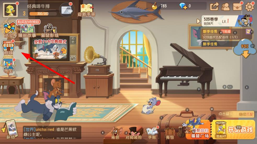 1、打開貓和老鼠游戲,在主界面中點擊界面左側(cè)的商城圖標(biāo),進入商城頁面選購角色。