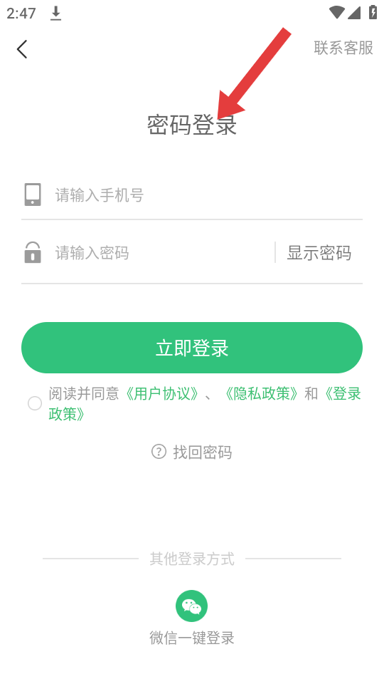 3、若賬號未登錄,需先在密碼登錄頁面,依次輸入手機號、密碼,勾選協(xié)議后完成登錄,登錄成功后再返回執(zhí)行邀請碼填寫操作。
