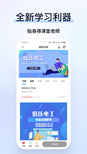 全方位備考輔導(dǎo)教學(xué)App,涵蓋職業(yè)資格、安全管理、學(xué)歷、特種設(shè)備等多種考試及專業(yè)課程,名師課堂直播同步教學(xué),海量試題免費(fèi)做,為學(xué)員用戶提供及時(shí)全面的內(nèi)容資訊,免費(fèi)提供大量?jī)?yōu)質(zhì)的公益培訓(xùn),讓天下沒有難拿的證!