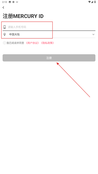 3、在該頁(yè)面內(nèi),輸入注冊(cè)的手機(jī)號(hào),再點(diǎn)擊注冊(cè)的按鈕。