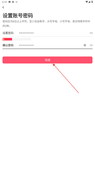 5、進(jìn)入到最后一步,設(shè)置賬號(hào)密碼,再點(diǎn)擊完成的按鈕即可。