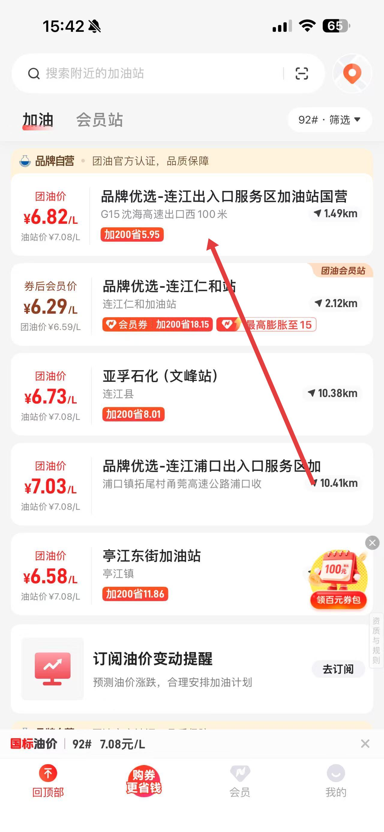1、打開能鏈團(tuán)油APP,在首頁選附近加油站里想去的加油站。