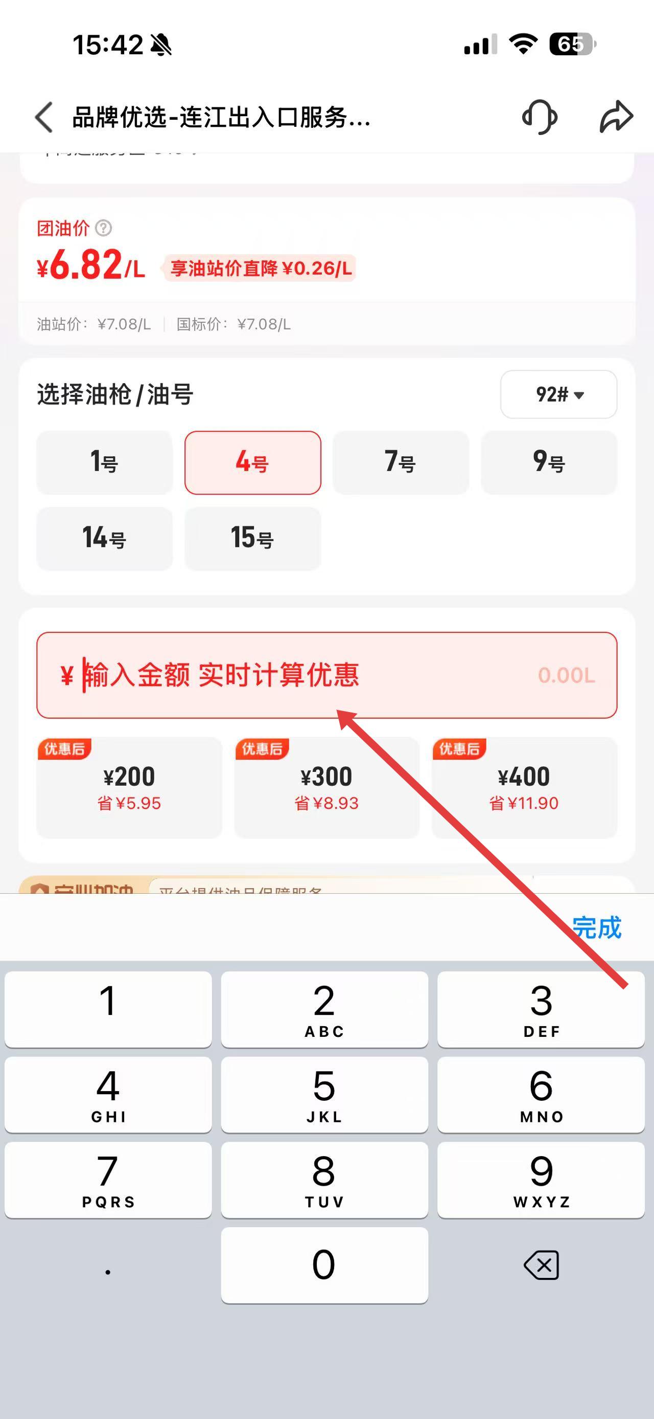 3、在金額輸入框填加油錢數(shù),查看顯示的優(yōu)惠后價格。