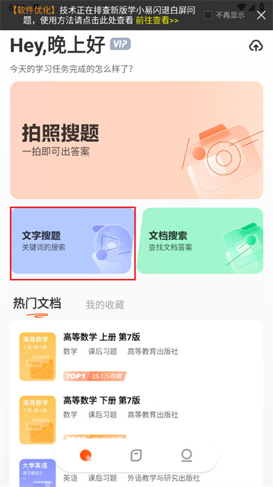 1、進入應(yīng)用之中后,可以點擊【文字搜題】欄目,以進行文字型題目的搜索;
