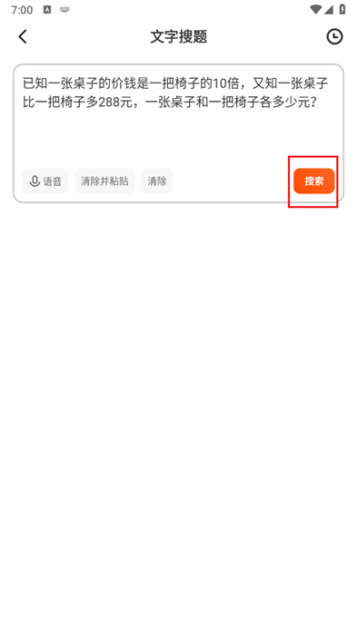 3、填寫完整后,用戶需要點擊搜索框右下角的【搜索】按鈕,以進行題目的搜索,出來后即可查看解題過程和答案;
