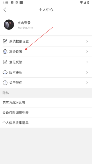 2、在個人中心頁面中,找到并點擊高級設(shè)置選項,進(jìn)入高級設(shè)置界面。