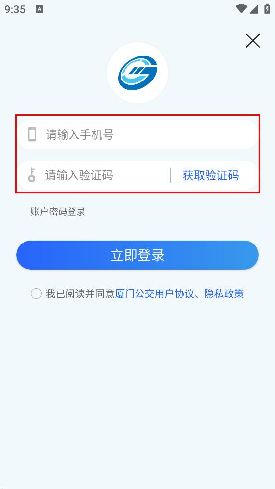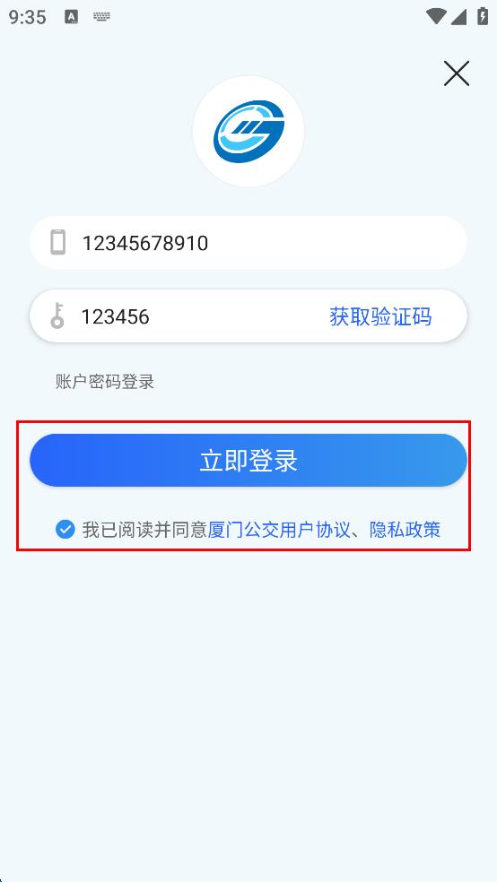 4、完成上述操作后,點擊“立即登錄”按鈕,即可完成廈門公交軟件的登錄。