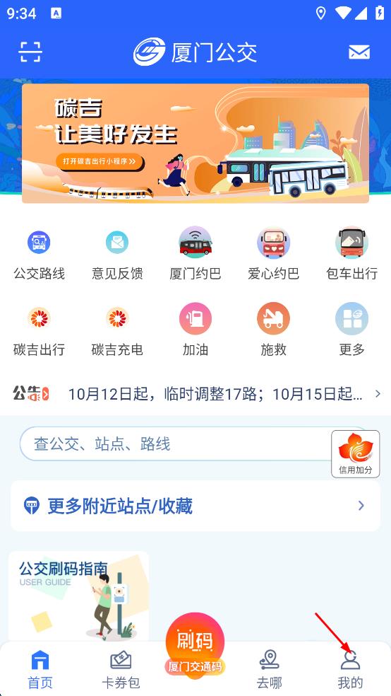 1、打開廈門公交軟件,進入首頁后,點擊頁面右下角的“我的”選項。
