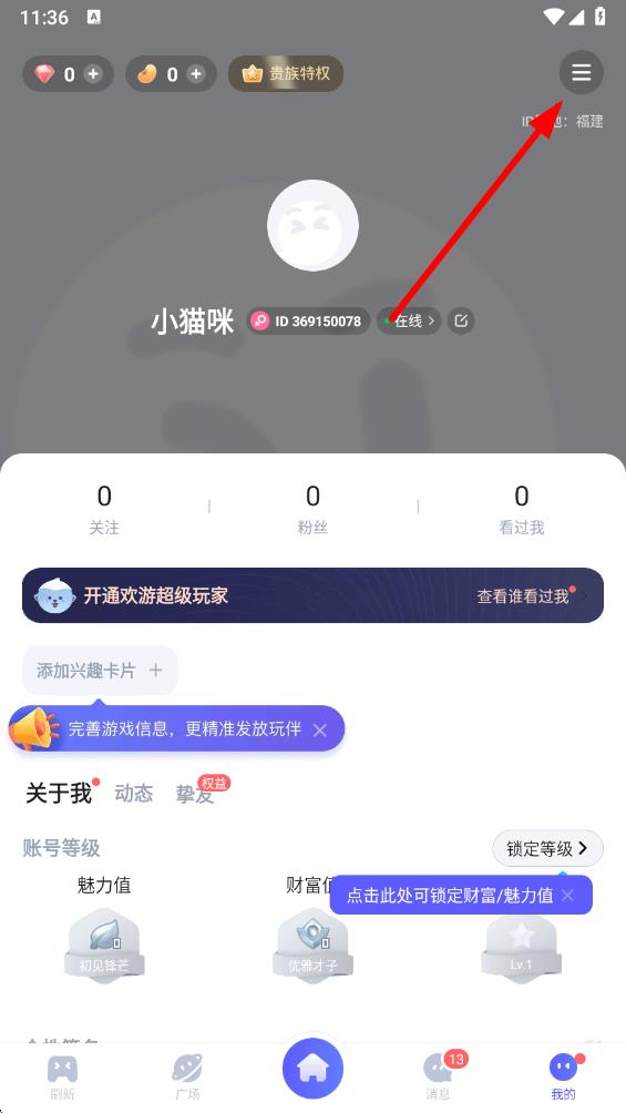 1、打開(kāi)歡游app,點(diǎn)擊底部導(dǎo)航欄中的我的選項(xiàng)。