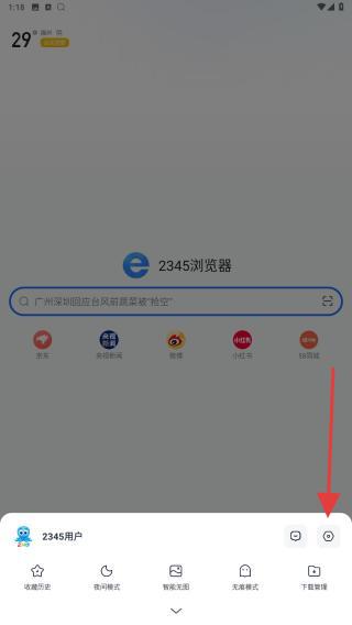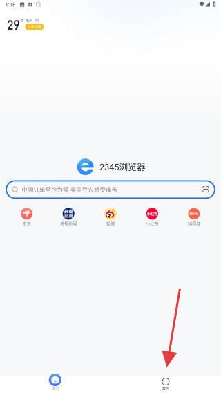1、啟動(dòng)2345瀏覽器APP,在首頁(yè)內(nèi)點(diǎn)擊右下我的功能圖標(biāo)。