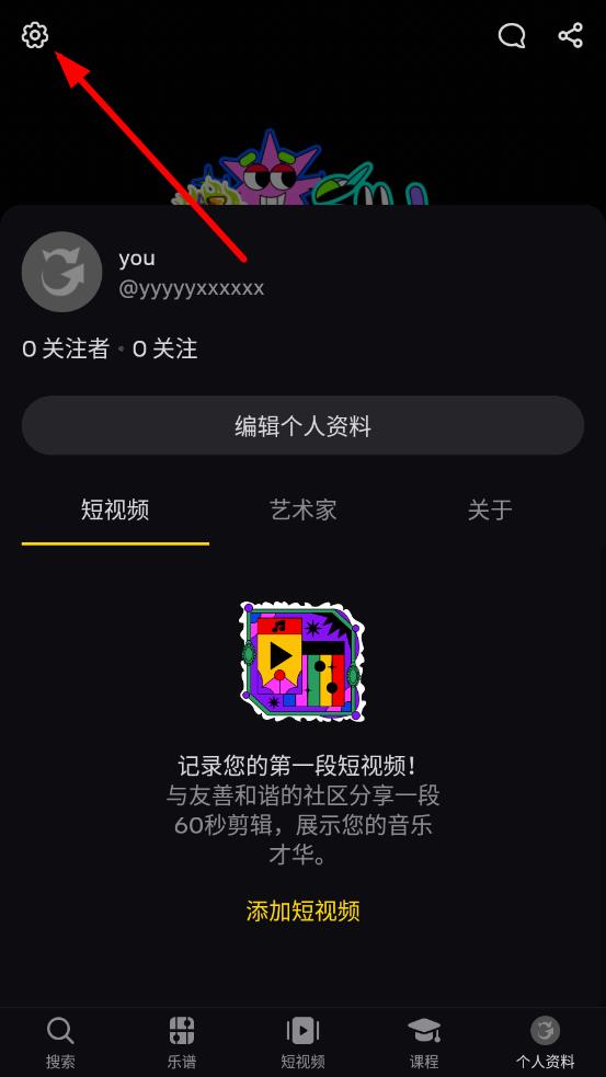 2、在個(gè)人資料頁(yè)面,點(diǎn)擊左上角齒輪形狀的設(shè)置圖標(biāo),進(jìn)入設(shè)置界面。