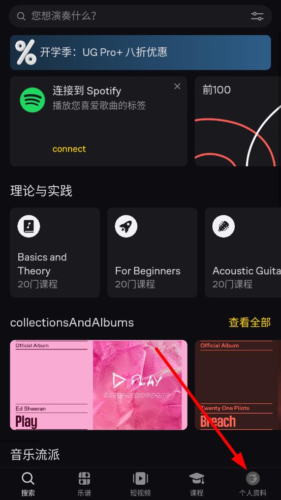 1、打開(kāi)吉他助手app,點(diǎn)擊底部導(dǎo)航欄最右側(cè)的個(gè)人資料圖標(biāo)。