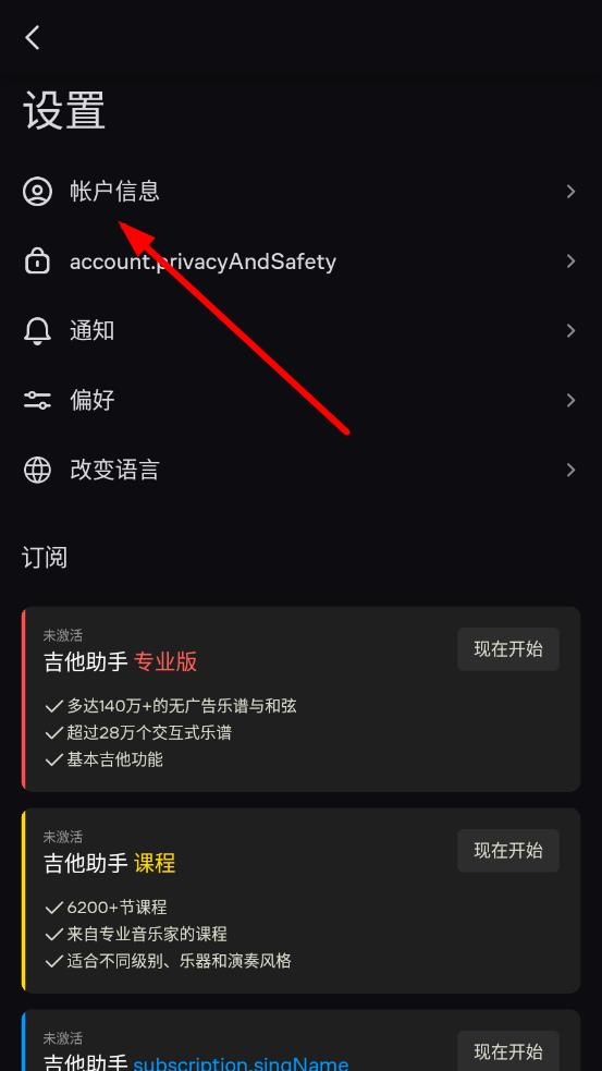 3、在設(shè)置界面中,找到并點(diǎn)擊帳戶(hù)信息選項(xiàng),進(jìn)入帳戶(hù)信息頁(yè)面。