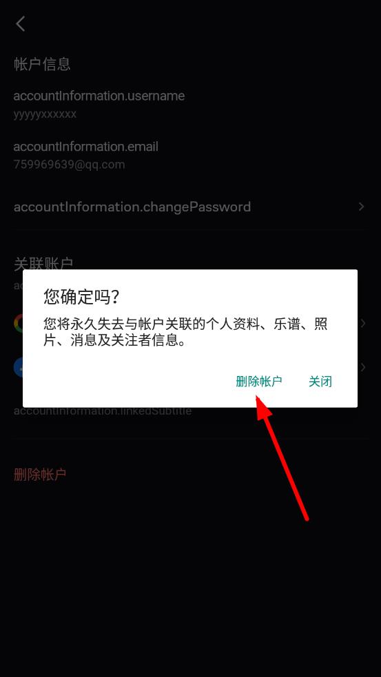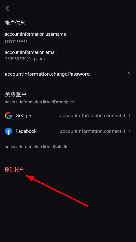 4、在帳戶(hù)信息頁(yè)面,點(diǎn)擊刪除帳戶(hù)選項(xiàng),進(jìn)入確認(rèn)操作。