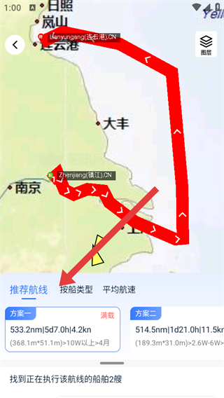 1、打開船訊網APP,在界面中找到航線功能選項并點擊,進入航線相關操作頁面。
