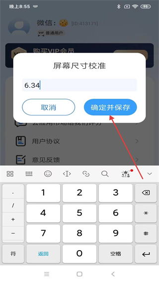 4、在屏幕尺寸校準(zhǔn)下,輸入后點(diǎn)擊確定并保存即可。
