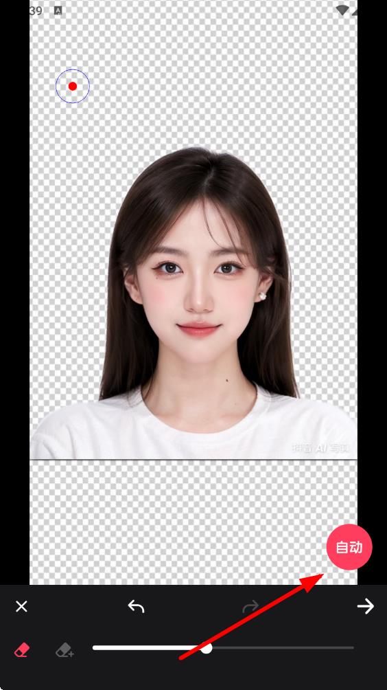 2、從相冊中選取需要更換背景顏色的照片,點擊右下角的自動按鈕,自動進(jìn)行人像摳圖。