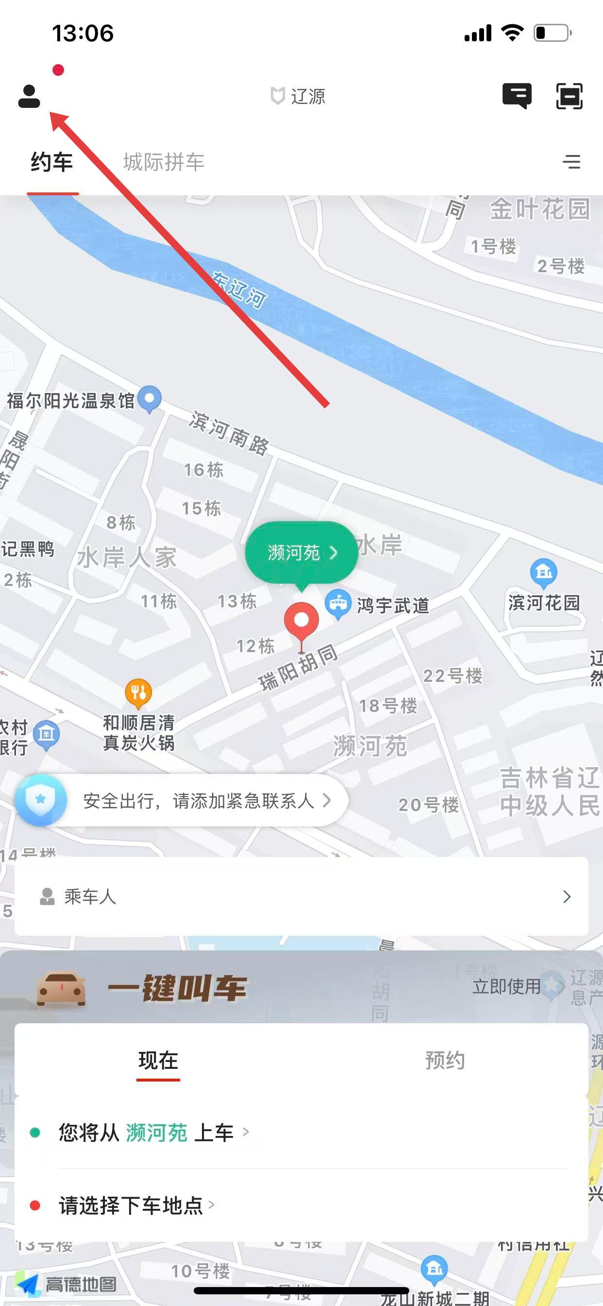 1、打開旗妙出行應(yīng)用,點(diǎn)擊左上角的個(gè)人頭像圖標(biāo),打開側(cè)邊欄。