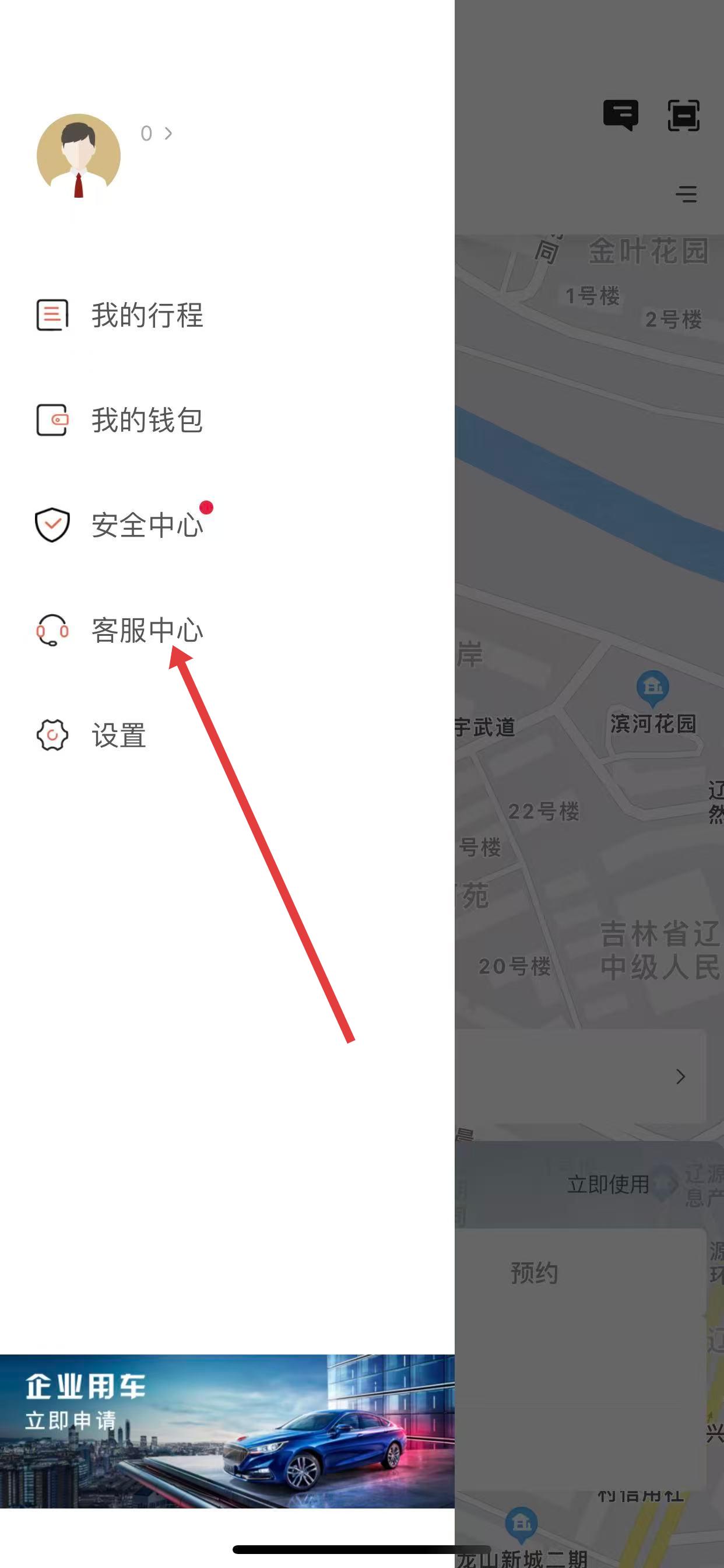 2、在側(cè)邊欄中,找到并點(diǎn)擊客服中心選項(xiàng)。