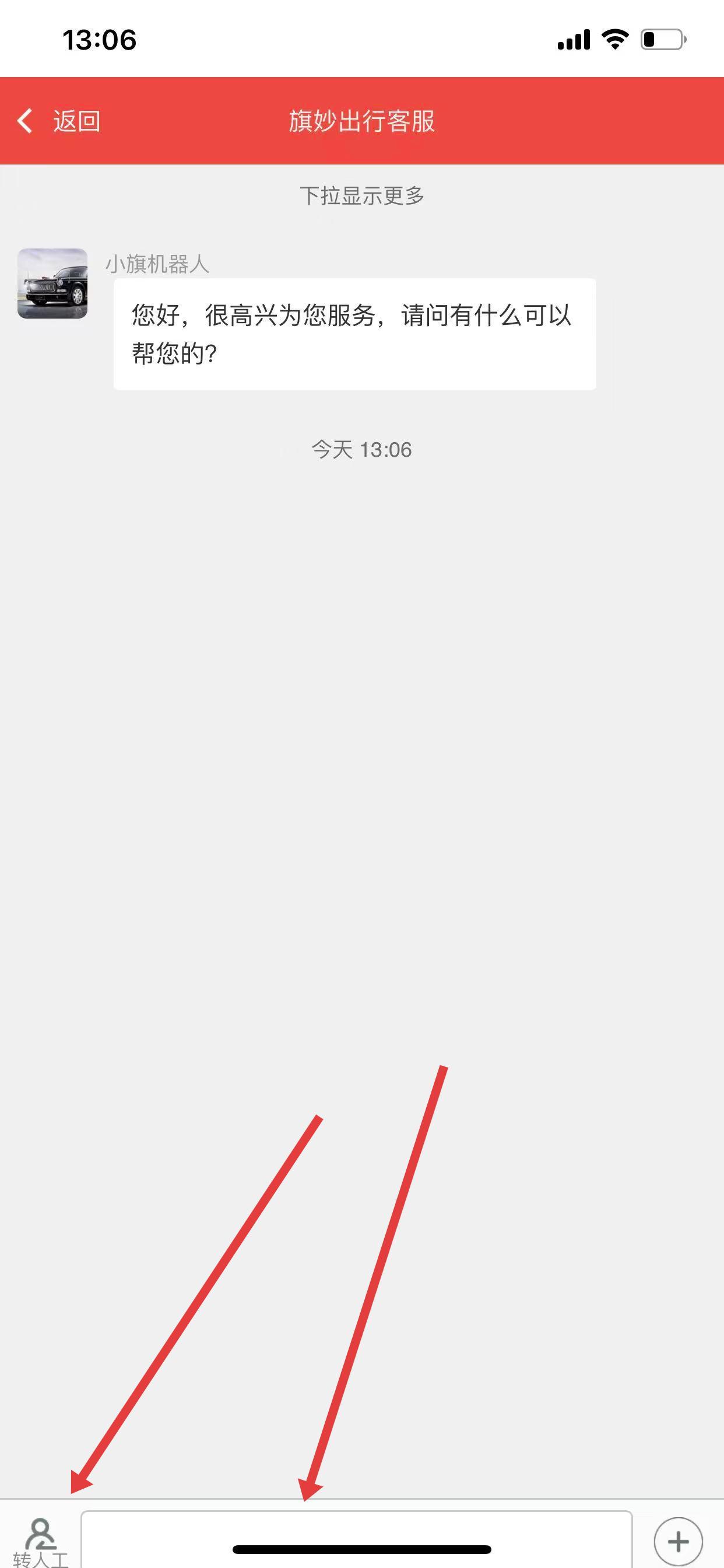 4、進(jìn)入與小旗機(jī)器人的聊天界面后,在輸入框中輸入相關(guān)問題, 點(diǎn)擊轉(zhuǎn)人工,即可聯(lián)系人工客服。