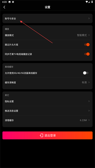 3、在設(shè)置的頁面內(nèi),點擊賬號與安全的按鈕。