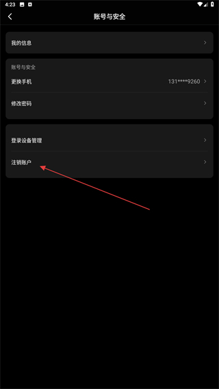 4、進入該頁面內(nèi),點擊注銷賬戶的功能按鈕。