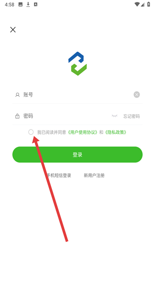 2、在進入到登錄頁面中,開始登錄前需先點擊我已閱讀并同意按鈕后操作。