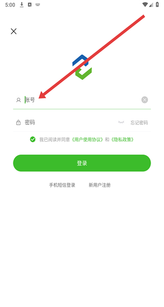 3、在勾選好同意按鈕后,可以點擊上方輸入框依次填寫賬號和密碼。