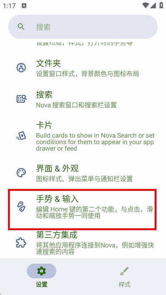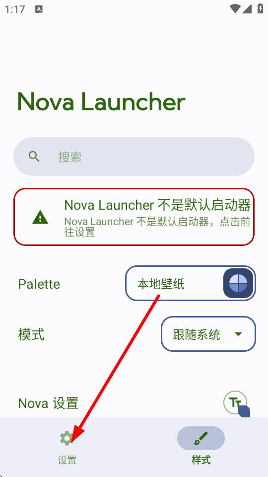 1、打開Nova,點擊底部的設(shè)置按鈕進入設(shè)置界面。