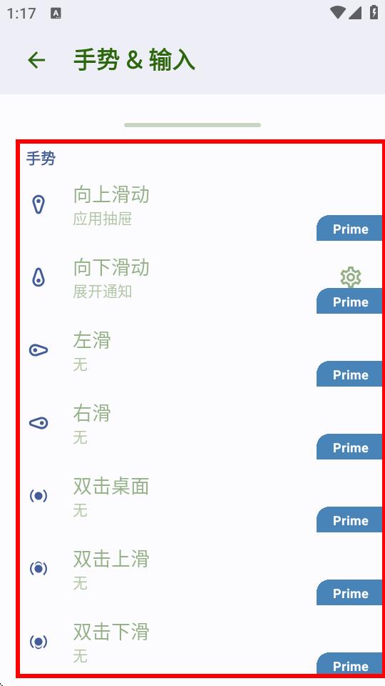 3、在手勢設(shè)置區(qū)域,選擇如向上滑動雙擊桌面等手勢,點擊右側(cè)選項,即可設(shè)置對應(yīng)的快捷鍵功能。