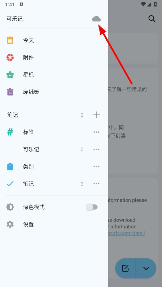2、在展開的側(cè)邊欄中,點擊頂部云朵形狀的同步圖標(biāo),進(jìn)入同步設(shè)置頁面。
