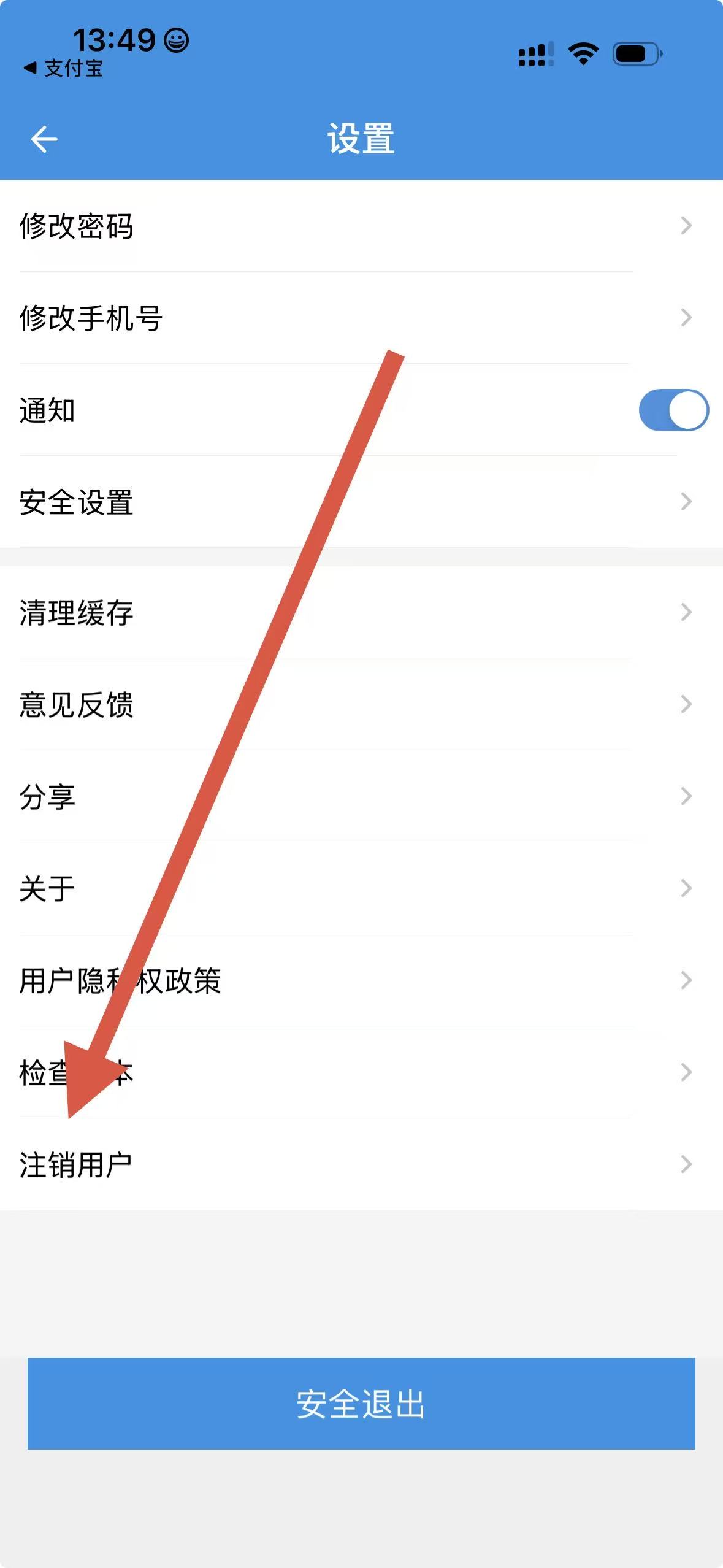 3、在設(shè)置頁(yè)面里,找到并點(diǎn)擊注銷用戶選項(xiàng)。