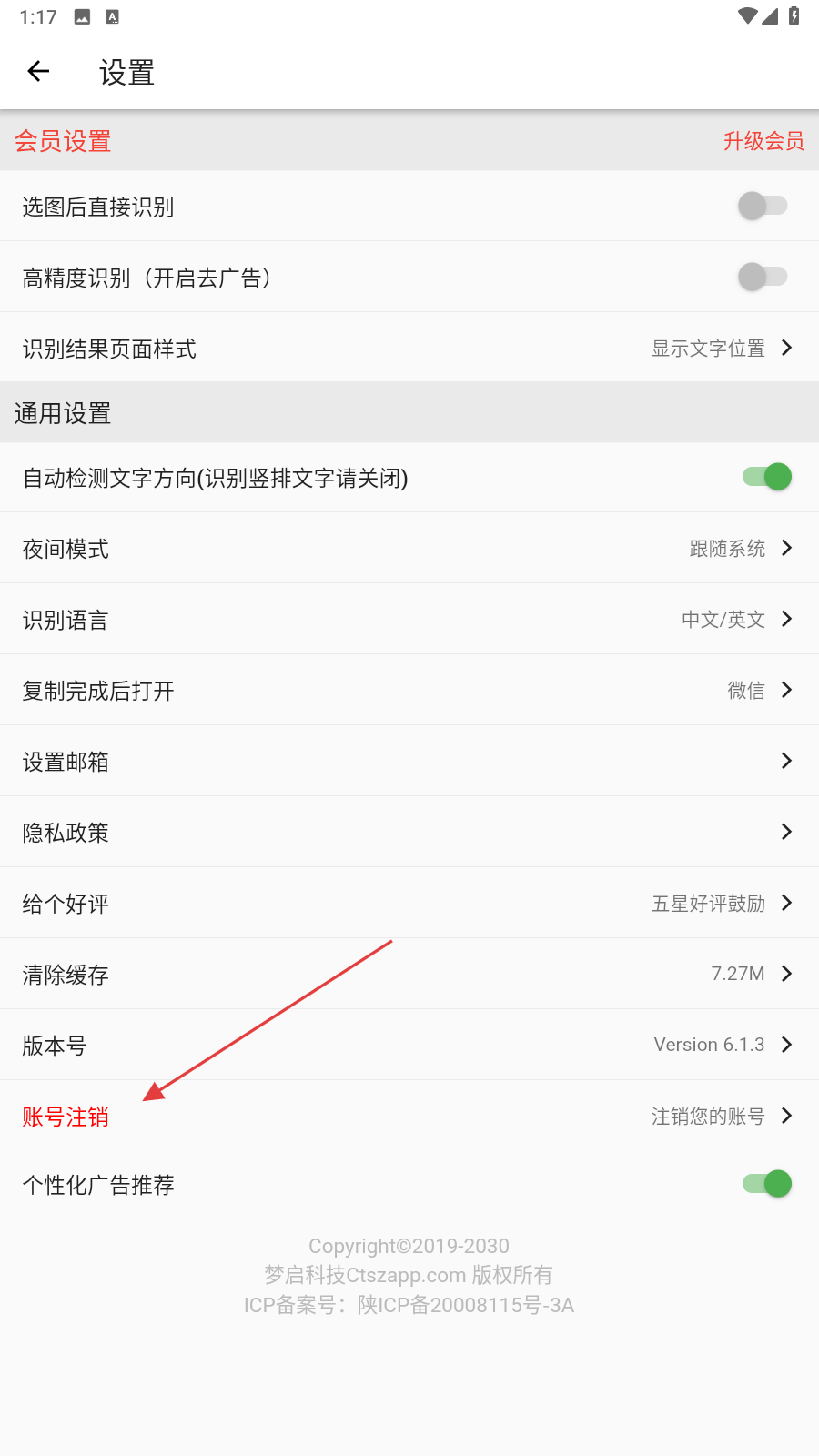 3、在設(shè)置的界面內(nèi),找到并點(diǎn)擊賬號注銷的按鈕。