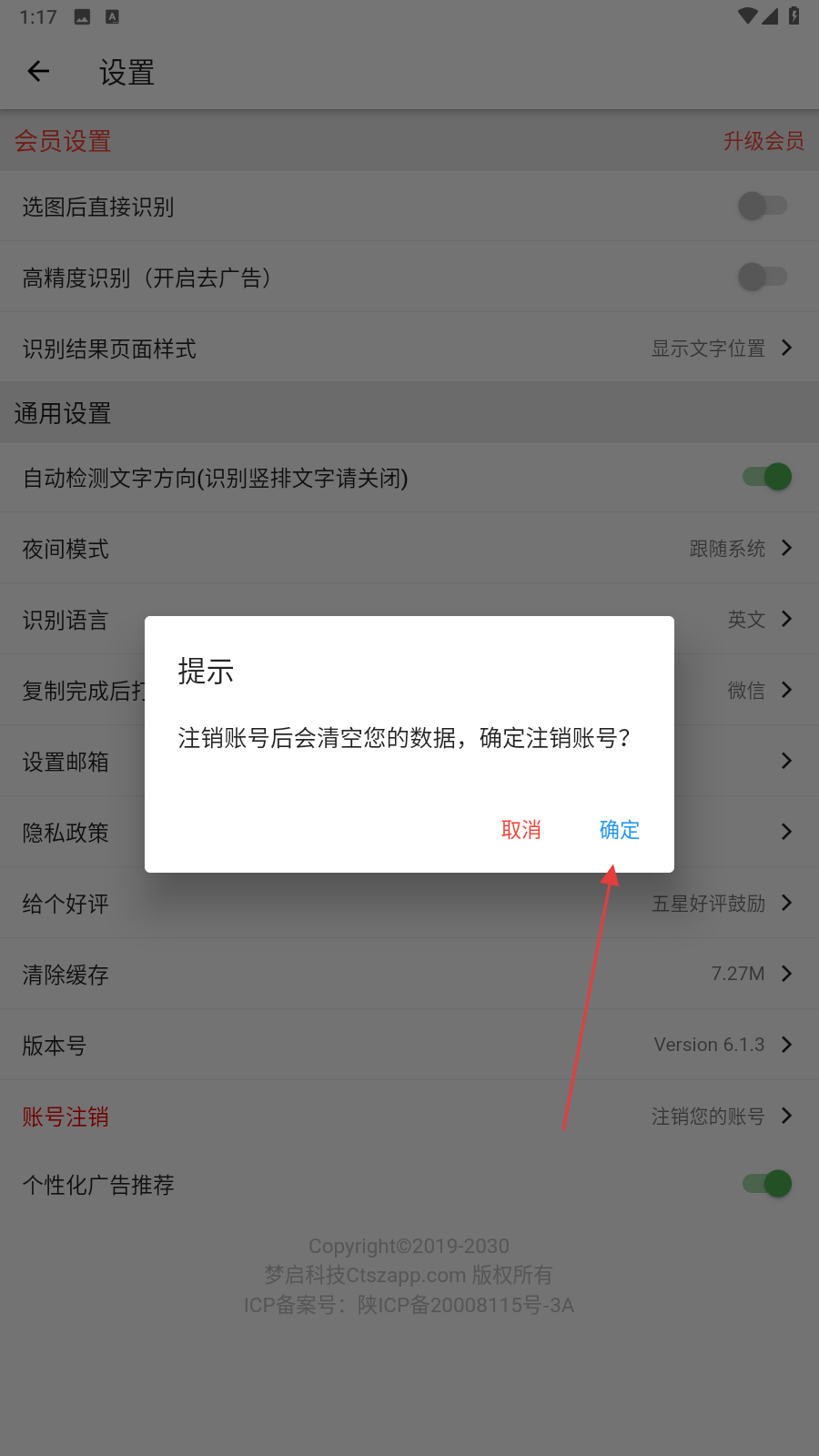 4、點(diǎn)擊后會彈出提示,點(diǎn)擊確定的按鈕即可完成注銷。