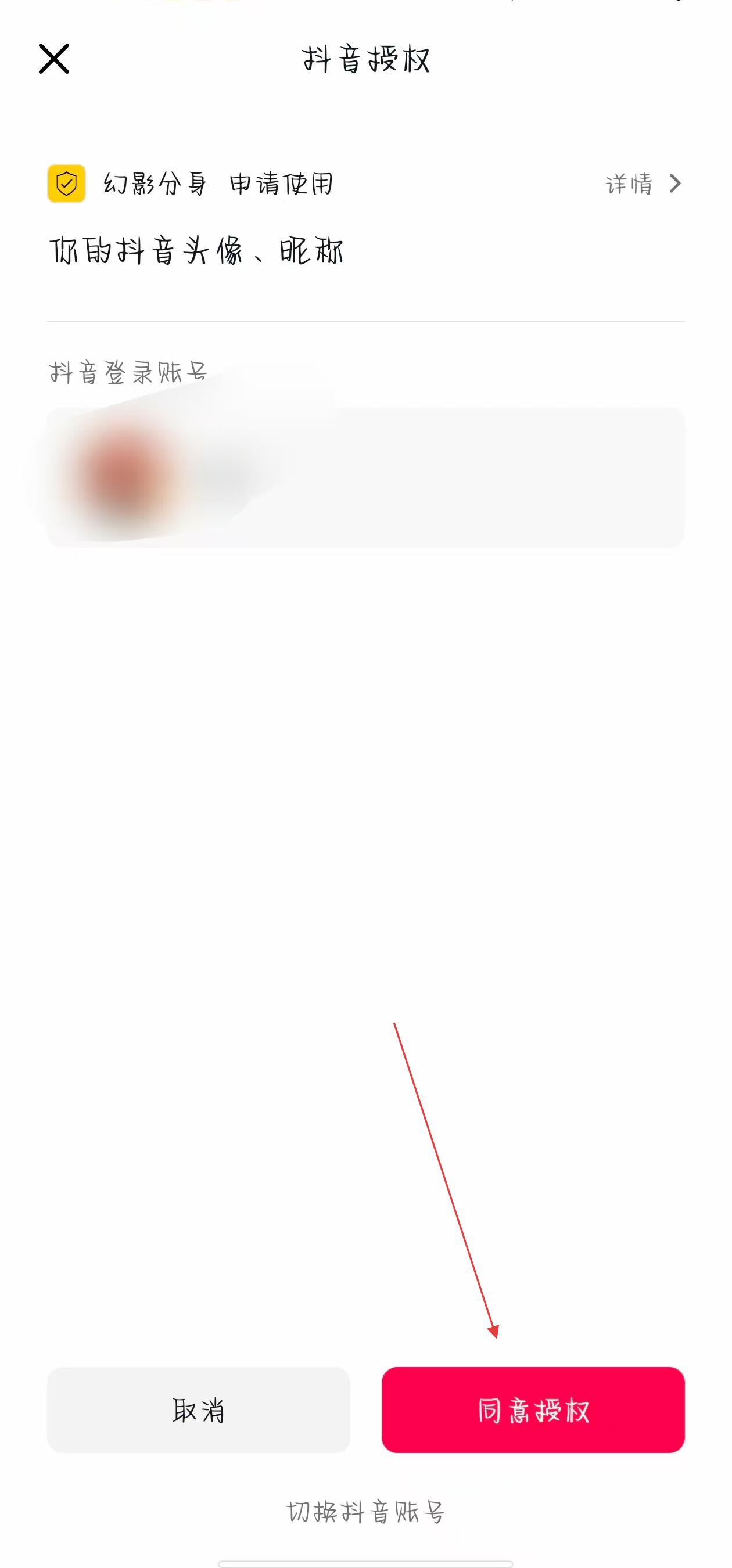3、在彈出的抖音授權(quán)界面,確認是要授權(quán)的抖音賬號后,點擊同意授權(quán),然后根據(jù)提示操作,即可獲得免費VIP。