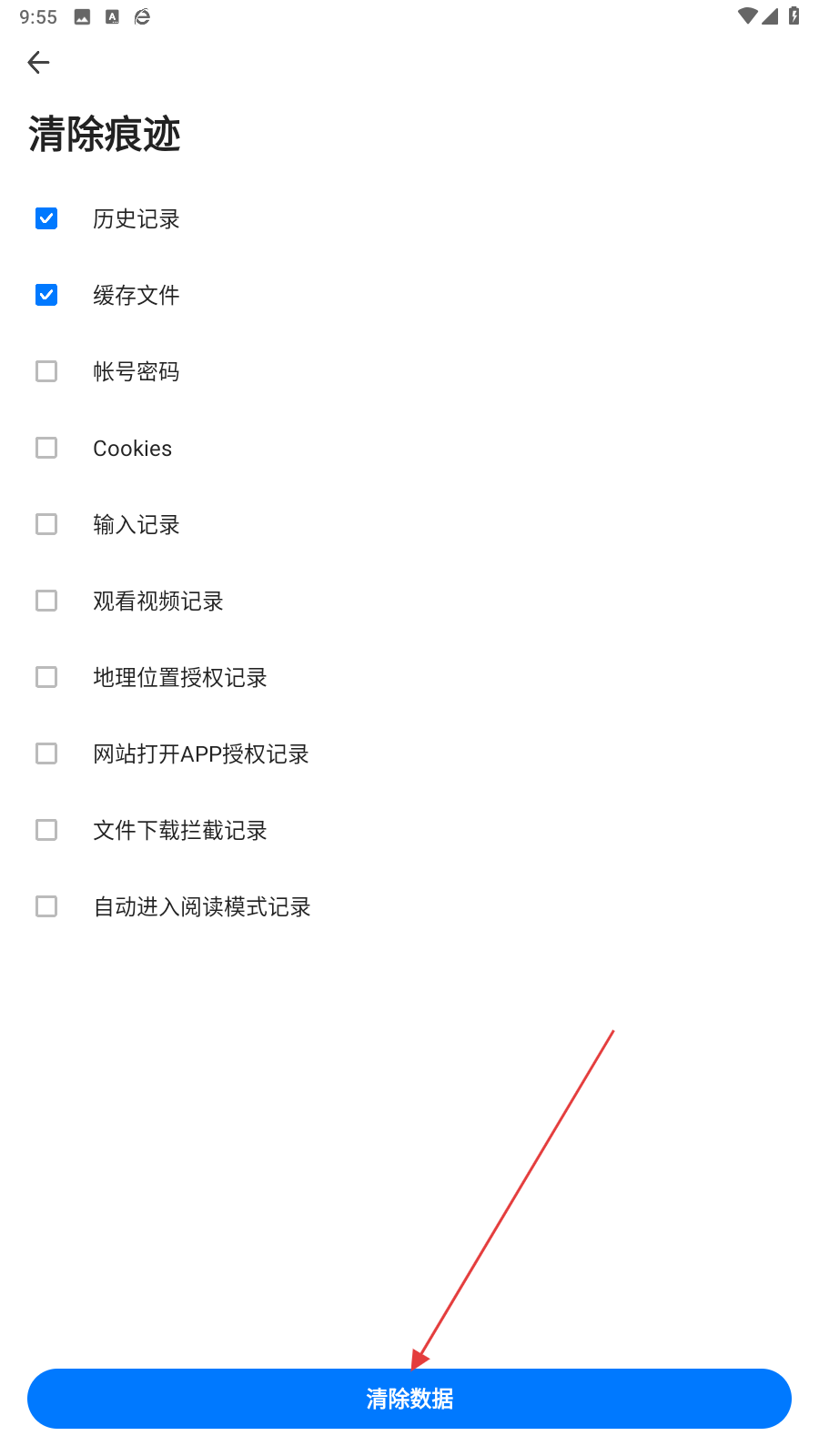 4、在清除痕跡的頁面內(nèi),選擇并勾選后再點(diǎn)擊清除數(shù)據(jù)即可。