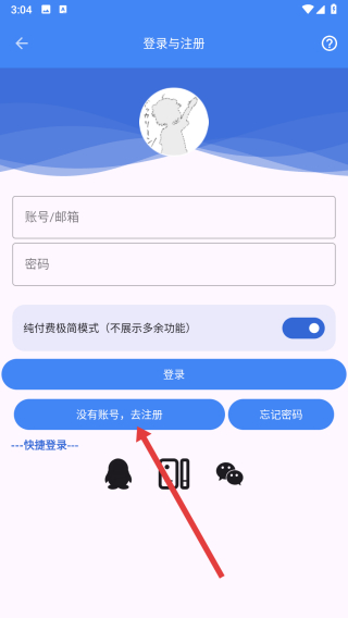 3、在進(jìn)入到登錄與注冊(cè)頁(yè)面后,若沒有賬號(hào),可以點(diǎn)擊下方去注冊(cè)按鈕,進(jìn)行注冊(cè)。