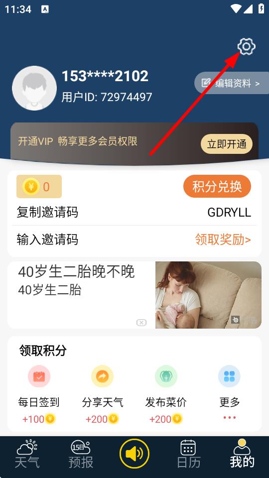 2、進(jìn)入我的頁面后,點(diǎn)擊右上方的齒輪設(shè)置圖標(biāo)。