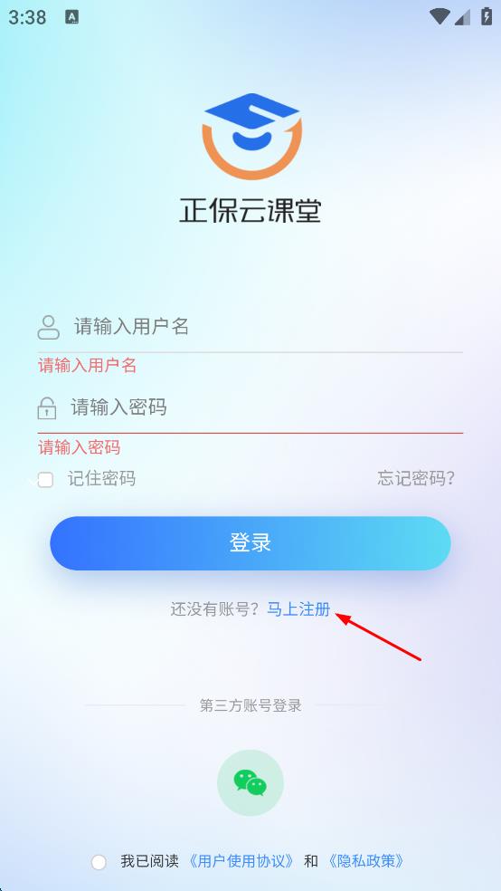 2、在登錄頁面,點擊“馬上注冊”,進入注冊新賬號頁面。