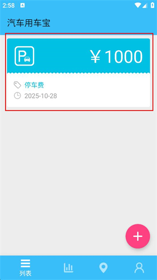 4、添加完成后,即可在列表頁面查看新增的停車費消費信息。