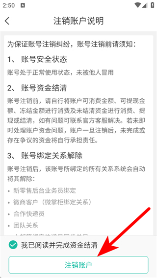4、在注銷賬戶說明頁(yè)面,點(diǎn)擊注銷賬戶,完成賬號(hào)注銷操作。