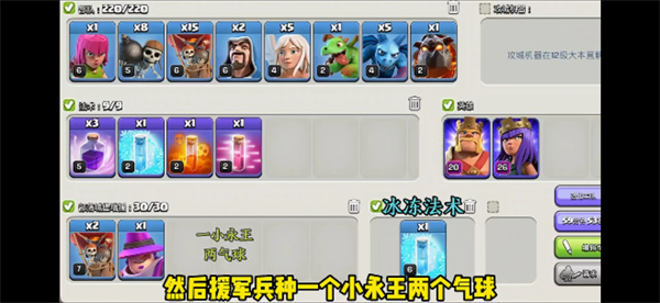 優(yōu)勢:能打三星、操作簡單、容錯率高、幾乎能打所有陣容,先用皮卡以及女王和蠻王稍微能給能清理的就清理一下,然后直接野豬一字劃就行,援兵的話沒要,不過打的話盡量要一條雷龍以及一個冰凍法術(shù),藥品就是治愈藥水以防野豬騎士的血量。