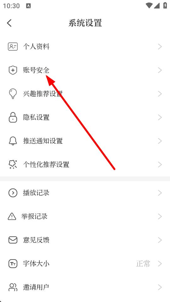 2、在系統(tǒng)設(shè)置界面里,點擊賬號安全選項,進入賬號安全設(shè)置頁。