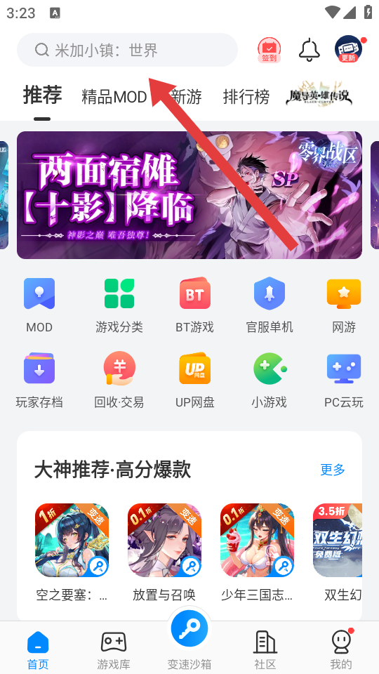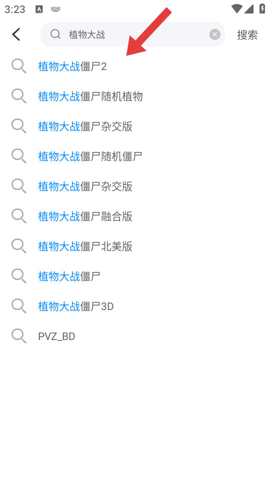 2、在搜索欄中輸入游戲關(guān)鍵詞,選擇對(duì)應(yīng)的搜索建議,觸發(fā)搜索結(jié)果展示。