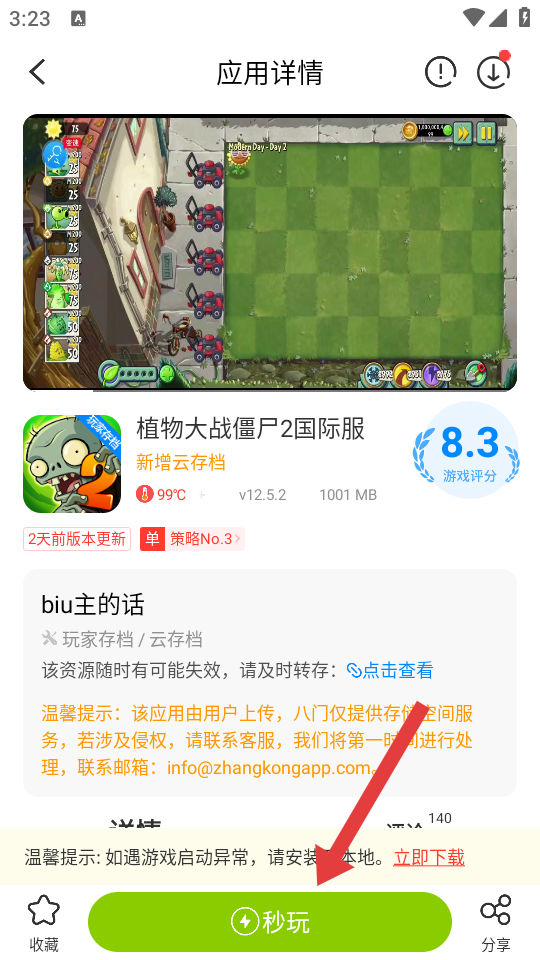 4、在應(yīng)用詳情頁(yè)面底部,點(diǎn)擊秒玩的按鈕,即可啟動(dòng)游戲開(kāi)始游玩。