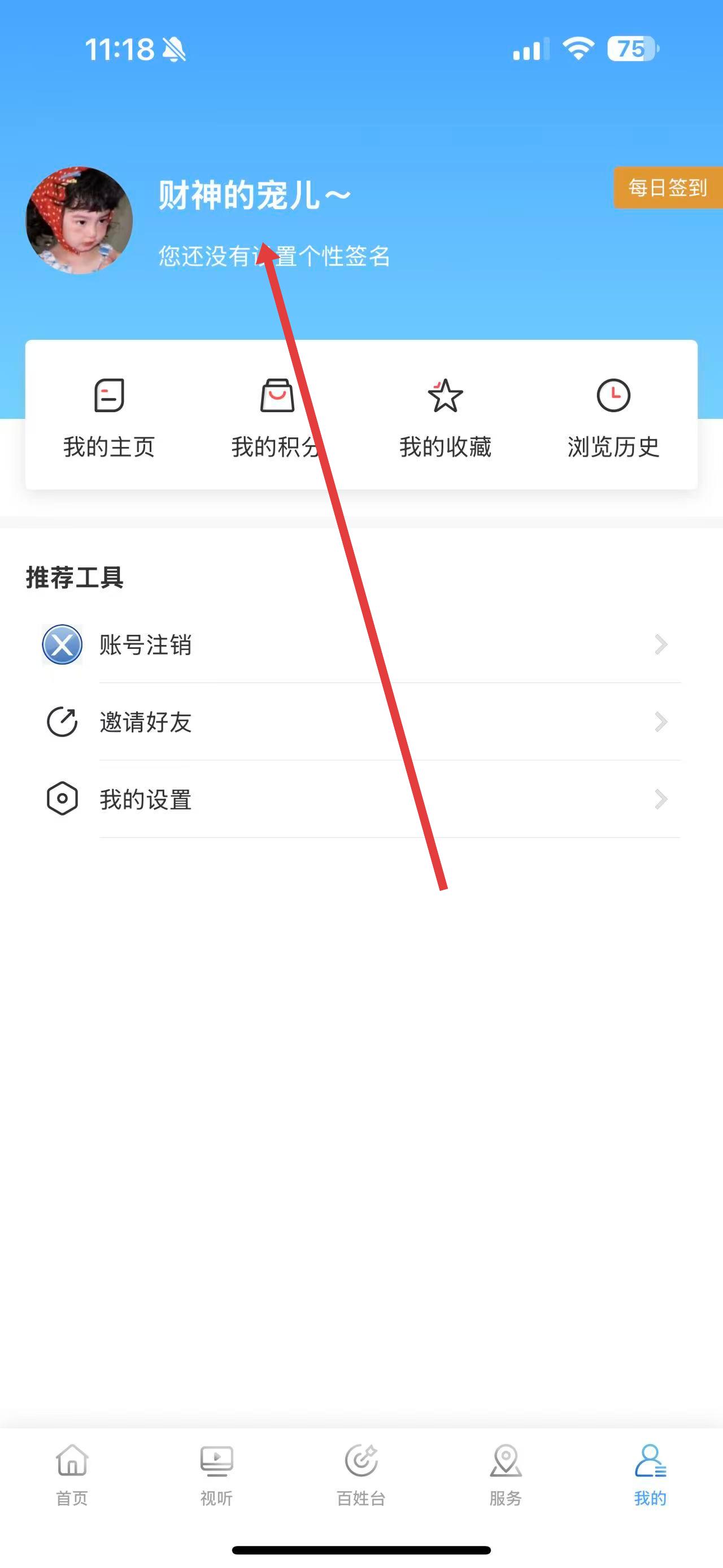 2、進(jìn)入我的頁面后,點(diǎn)擊頁面上方的頭像或者昵稱區(qū)域。