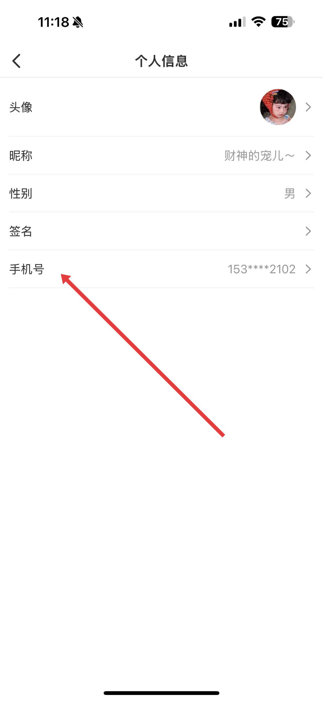 4、進(jìn)入個人信息頁面,找到手機(jī)號選項(xiàng)并點(diǎn)擊,按照提示流程操作即可修改手機(jī)號碼信息。